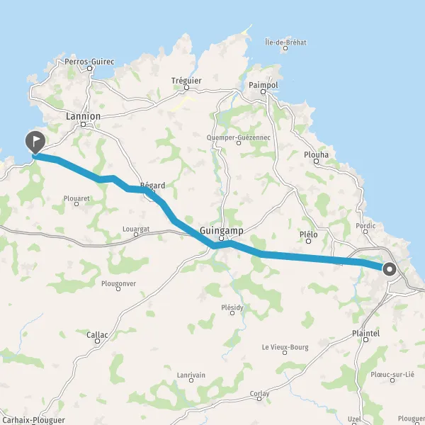 Tourner légèrement à gauche sur D30 (Route de Ploumilliau) et continuer sur 5,4 kilomètres