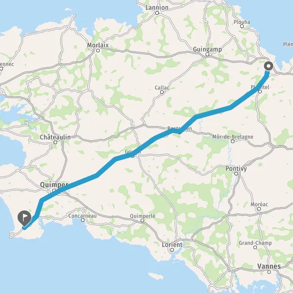 Au rond-point, prendre la 3ème sortie sur D785 (Route de Pluguffan) et continuer sur 14 kilomètres
