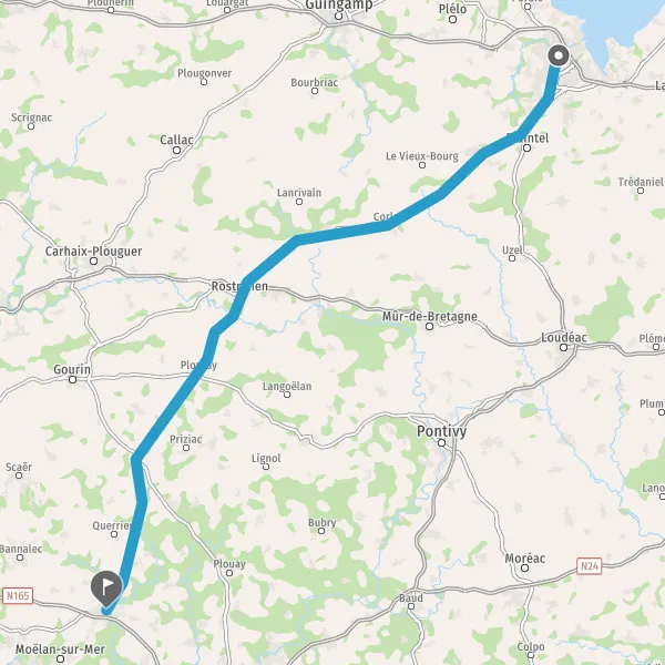 Au rond-point, prendre la 2ème sortie sur D765 (Rue de Quimper) et continuer sur 280 mètres