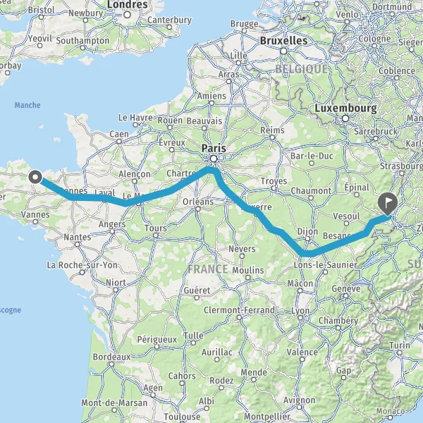 Prendre à droite et rejoindre A36. Continuer sur 221 kilomètres