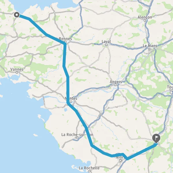 Prendre à droite et rejoindre A83. Continuer sur 150 kilomètres