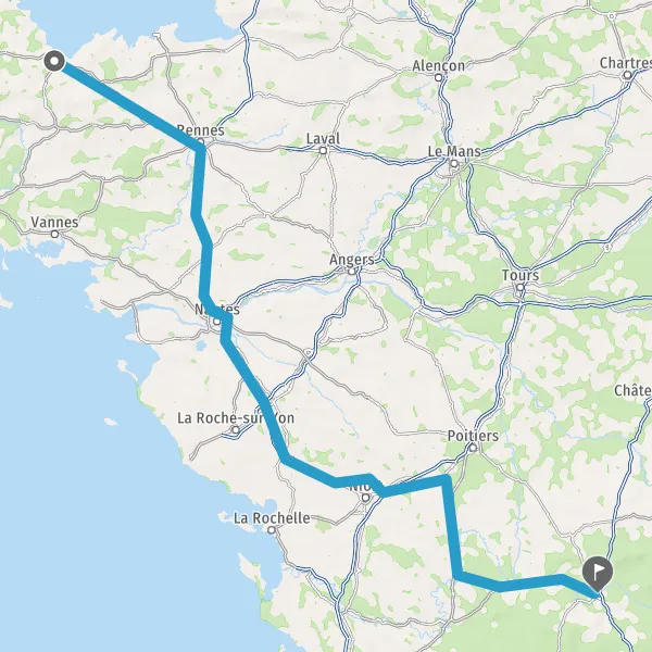 Prendre à droite et rejoindre A83. Continuer sur 150 kilomètres