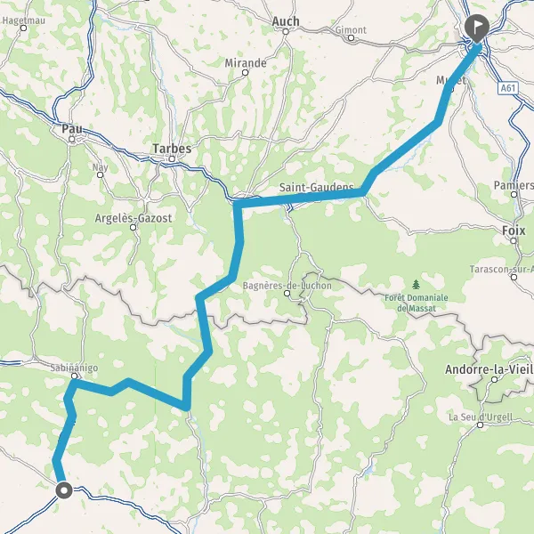 Prendre à droite et rejoindre A64 E80. Continuer sur 111 kilomètres