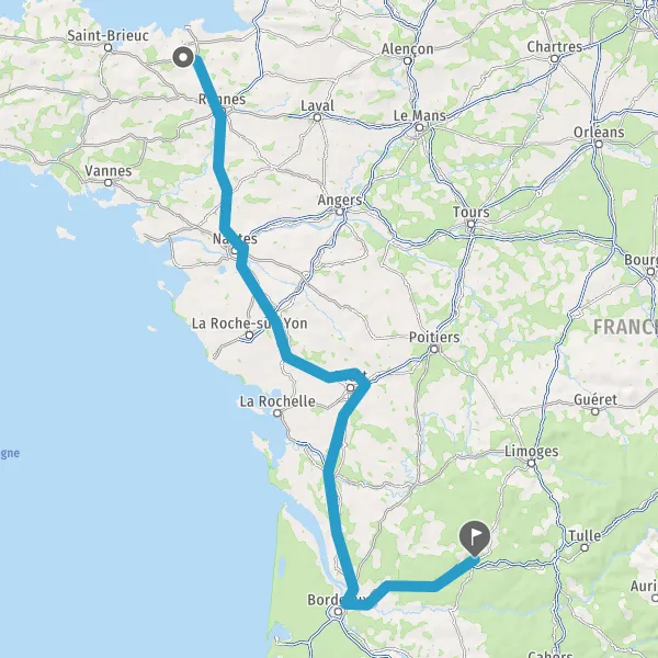 Prendre à droite et rejoindre A83. Continuer sur 150 kilomètres