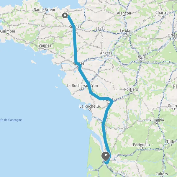 Prendre à droite et rejoindre A83. Continuer sur 150 kilomètres