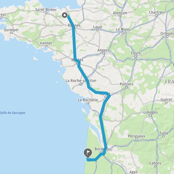 Prendre à droite et rejoindre A83. Continuer sur 150 kilomètres
