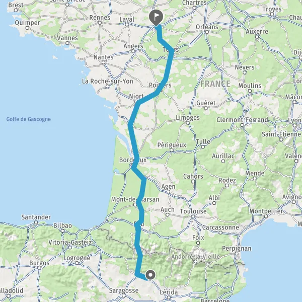 Prendre à droite et rejoindre A65. Continuer sur 150 kilomètres