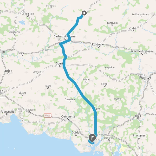 Au rond-point, prendre la 2ème sortie sur D769 (Ty Néhué Kerraoul) et continuer sur 13 kilomètres