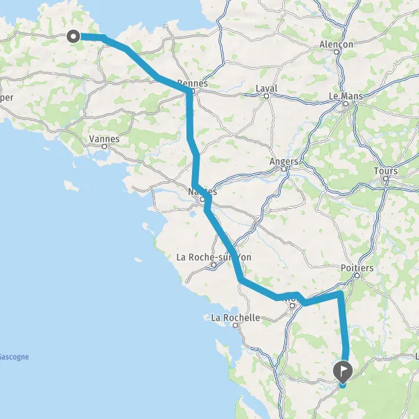 Prendre à droite et rejoindre A83. Continuer sur 150 kilomètres