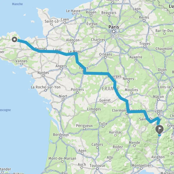 Prendre à droite et rejoindre A85 E604. Continuer sur 106 kilomètres
