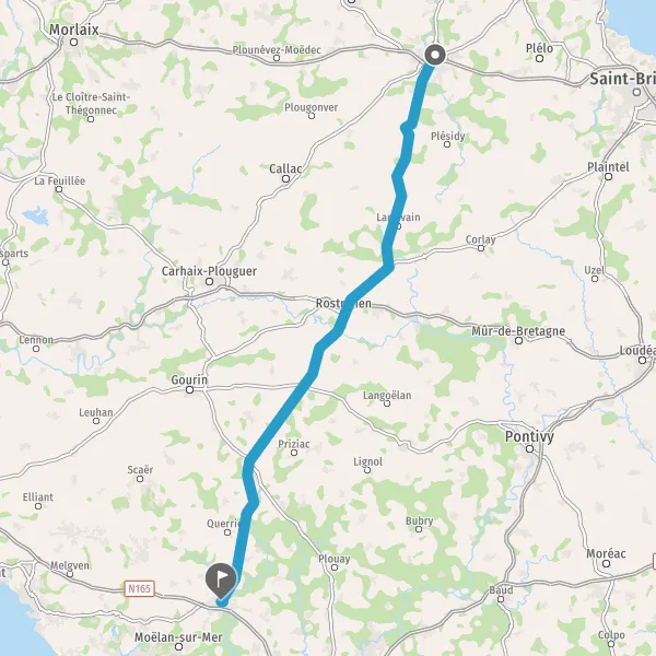 Tourner légèrement à droite sur D8 (Route de Bourbriac) et continuer sur 9,3 kilomètres