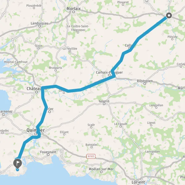 Prendre à droite et rejoindre N165 E60 (N165). Continuer sur 24 kilomètres