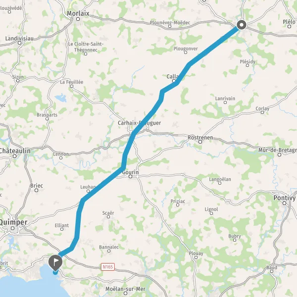 Tourner à gauche sur D787a (Rue de Locménard) et continuer sur 25 kilomètres