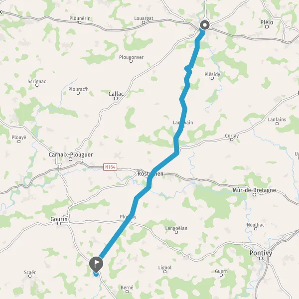 Tourner légèrement à droite sur D8 (Route de Bourbriac) et continuer sur 9,3 kilomètres