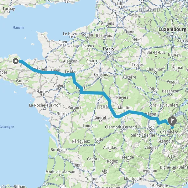 Prendre à droite et rejoindre A85 E604. Continuer sur 106 kilomètres