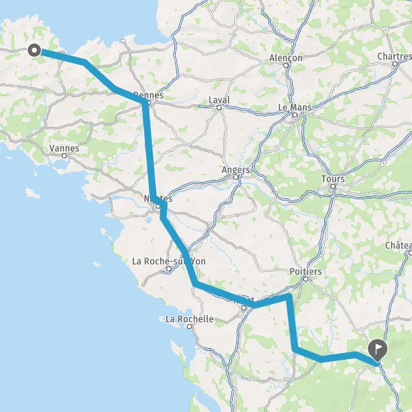 Prendre à droite et rejoindre A83. Continuer sur 150 kilomètres