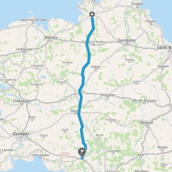 Tourner à gauche sur D769 (Gare de Motreff) et continuer sur 14 kilomètres