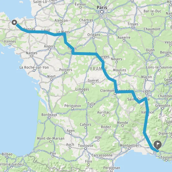 Prendre à droite et rejoindre A85 E604. Continuer sur 106 kilomètres