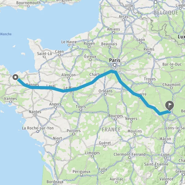 Trajet de Lamballe-Armor (22400) à Dijon (21000) en voiture