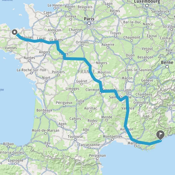 Continuer E11 (L'Arverne) sur 206 kilomètres