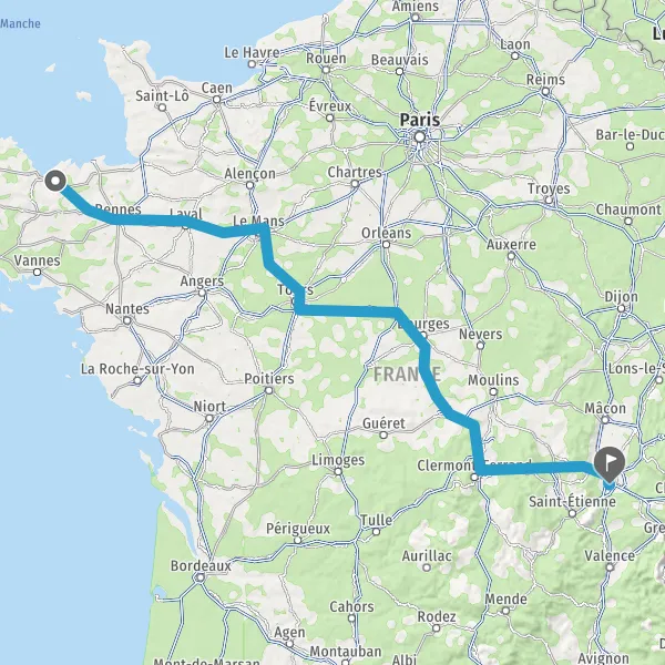Prendre à droite et rejoindre A85 E604. Continuer sur 106 kilomètres