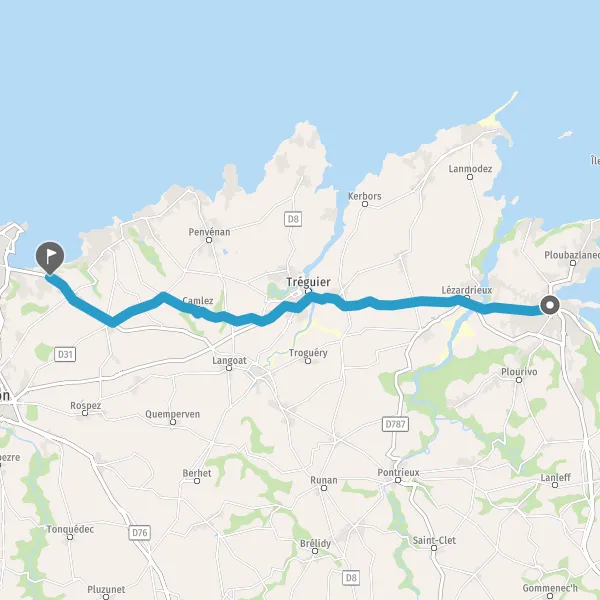 Au rond-point, prendre la 1ère sortie sur D6 (Route de Perros-Guirec) et continuer sur 2,7 kilomètres