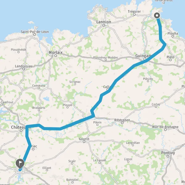 Prendre à droite et rejoindre D787 (Rue de Callac). Continuer sur 25 kilomètres
