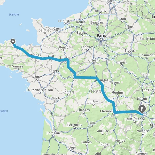Prendre à droite et rejoindre A85 E604. Continuer sur 106 kilomètres