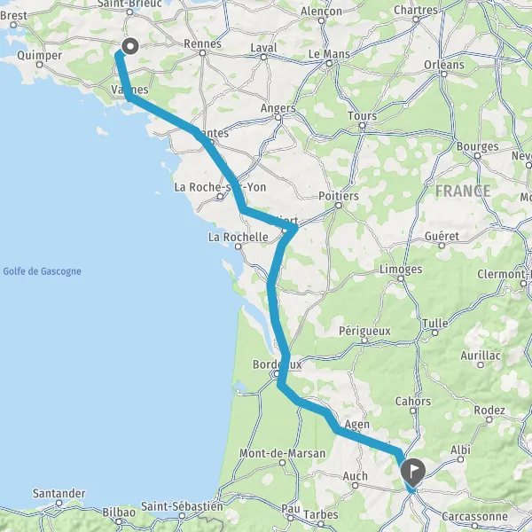 Prendre à droite et rejoindre A83. Continuer sur 150 kilomètres