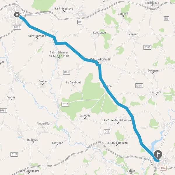 Continuer D778 (Rue du Porhoët) sur 6,5 kilomètres