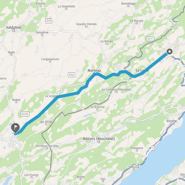 Au rond-point, prendre la 2ème sortie sur 20 (Rue du Locle) et continuer sur 800 mètres