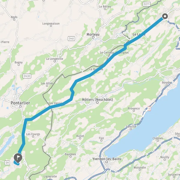 Tourner légèrement à gauche sur Le Bas-du-Cerneux et continuer sur 2,8 kilomètres