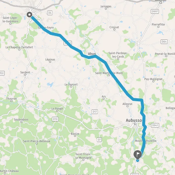 Au rond-point, prendre la 2ème sortie sur Route d'Aubusson et continuer sur 30 mètres