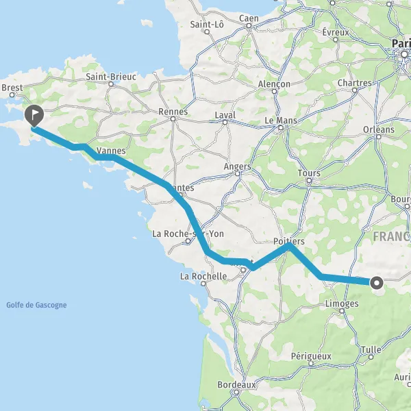 Prendre à droite et rejoindre A83. Continuer sur 150 kilomètres