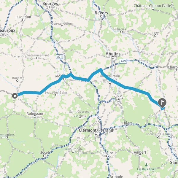 Prendre à droite et rejoindre A71. Continuer sur 22 kilomètres