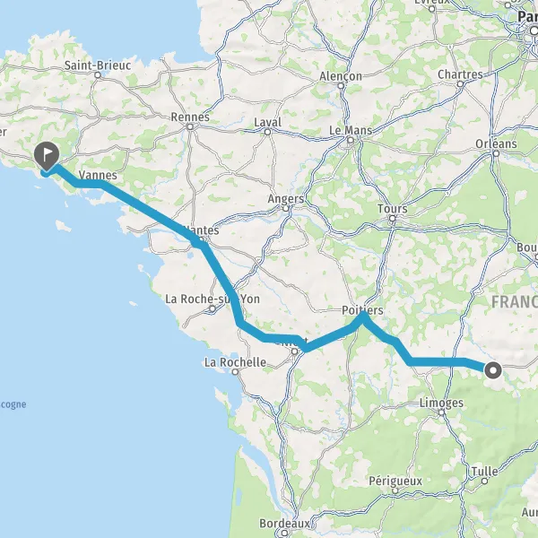 Prendre à droite et rejoindre A83. Continuer sur 150 kilomètres