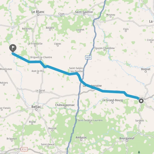 Tourner à droite sur D951 (Route de Dun-le-Palestel) et continuer sur 65 mètres