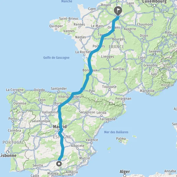 Payer 2,00 € (Péage Biriatou) Autoroute de la Côte Basque Payer 2,80 € (Péage La Negresse) Payer 4,30 € (Péage Benesse) Payer 4,40 € (Péage Castets) Payer 4,40 € (Péage Saugnacq-et-Muret) 813 km