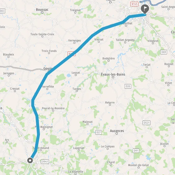 Prendre à droite et rejoindre N145 E62 (Route Centre-Europe Atlantique). Continuer sur 16 kilomètres