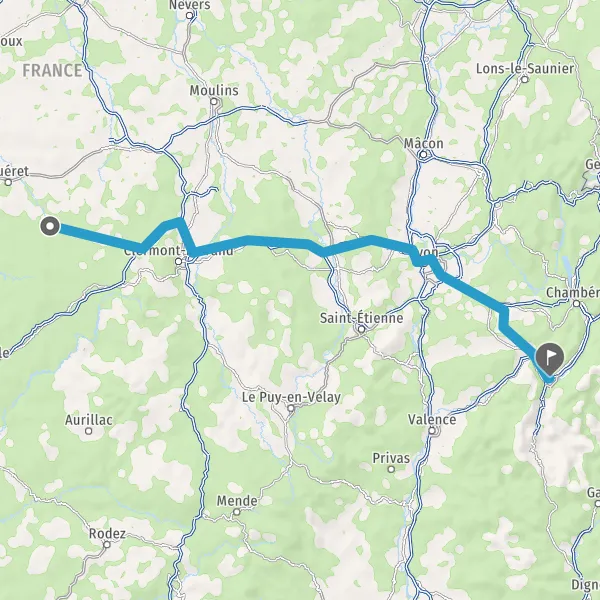 Prendre à droite et rejoindre A89 E70. Continuer sur 84 kilomètres