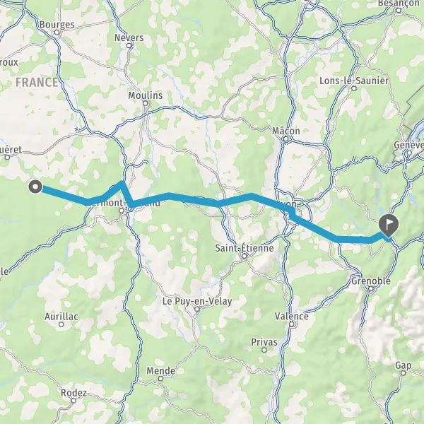 Prendre à droite et rejoindre A89 E70. Continuer sur 84 kilomètres