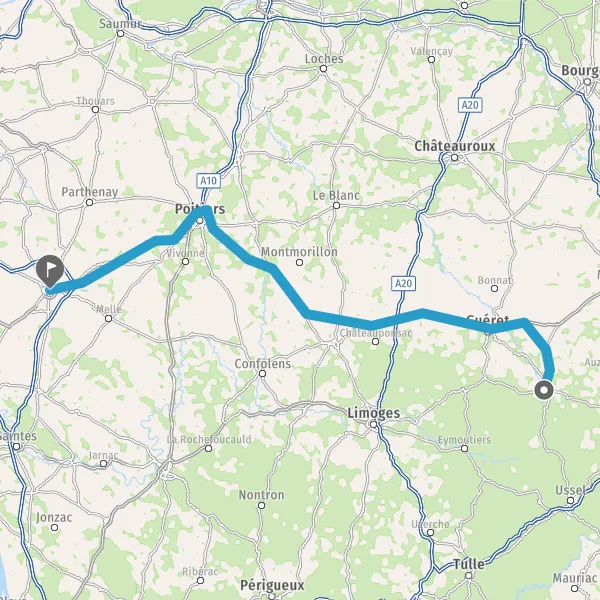 Au rond-point, prendre la 2ème sortie sur N147 (Route de Limoges) et continuer sur 10 kilomètres