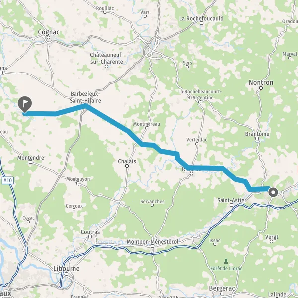 Tourner légèrement à droite sur D710 (Route de Ribérac) et continuer sur 6,1 kilomètres