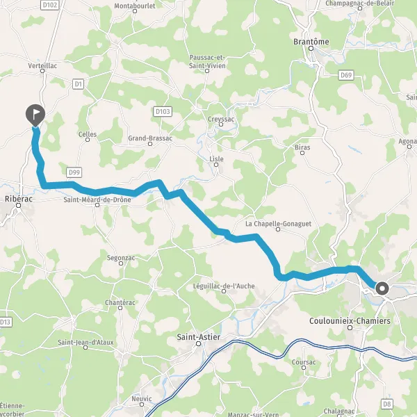 Tourner légèrement à droite sur D710 (Route de Ribérac) et continuer sur 6,1 kilomètres