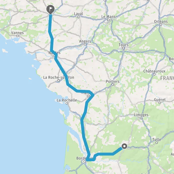 Prendre à droite et rejoindre A83. Continuer sur 150 kilomètres