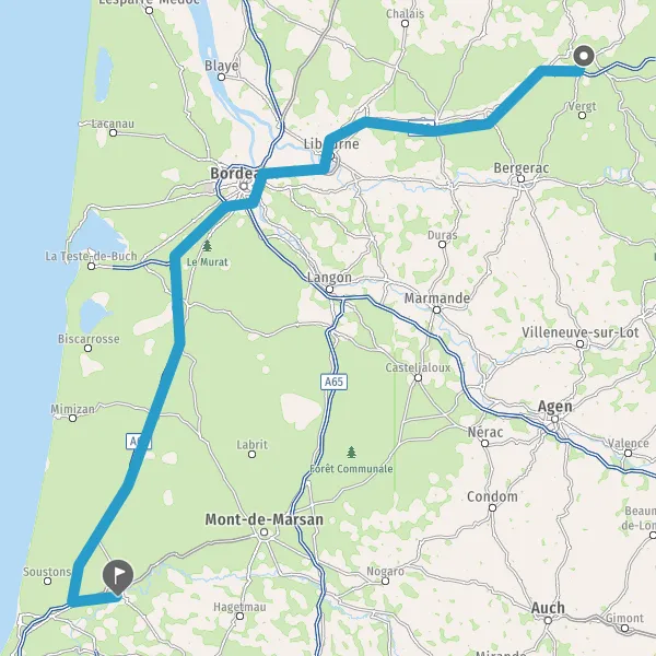 Prendre à droite et rejoindre A63. Continuer sur 117 kilomètres