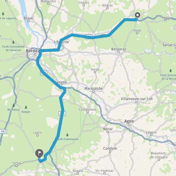 Prendre à droite et rejoindre A65. Continuer sur 70 kilomètres