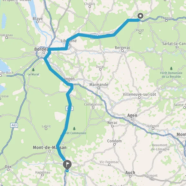 Prendre à droite et rejoindre A65. Continuer sur 99 kilomètres