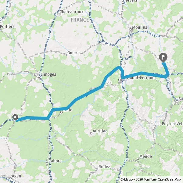 Prendre à droite et rejoindre A89. Continuer sur 160 kilomètres