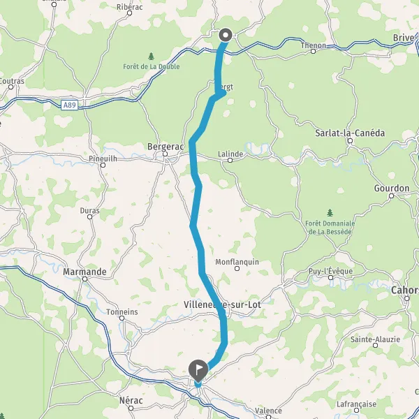 Tourner à droite sur D8 (Route de Bergerac) et continuer sur 1,4 kilomètre